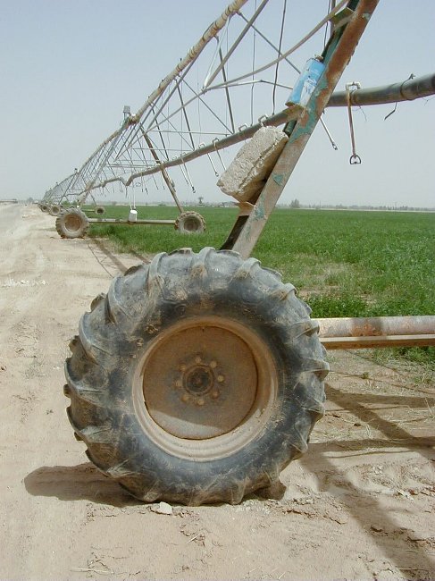 Die Farmen sind üppige, wahrscheinlich auch mit Wasser von den Küsten versorgte Einsprengsel in der Wüste. Das Wort "Erde" ist unangebracht, wie man leicht an Feldern sehen kann, die man der Wüste zur Wiedervereinnahmung anheimstellte. Hier ist alles Sand und kalkig-steiniger Boden, und wo am Straßenrand in wohlhabenden Farmgegenden Schläuche gut dosiert Wasser freisetzen, wachsen prächtige Palmen, solange Anlaß zur Bewässerung gegeben ist.