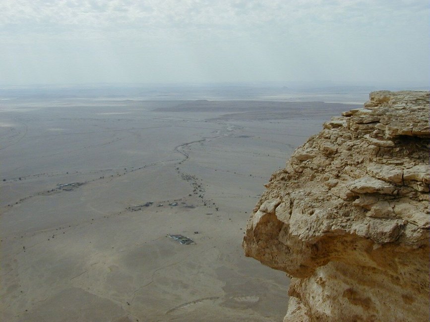 Man kann die Idee, die hinter der Bauweise steckt, selbstverständlich an den Ruinen studieren. Oder man kann in Riad auf einen der innerstädtischen Hügel aus Limestone klettern und hoffen, daß man nicht eine mangelhaft verhüllte Frau auf einem nachbarschaftlichen Dach überrascht, was sicher höllischen Ärger zur Folge hätte.