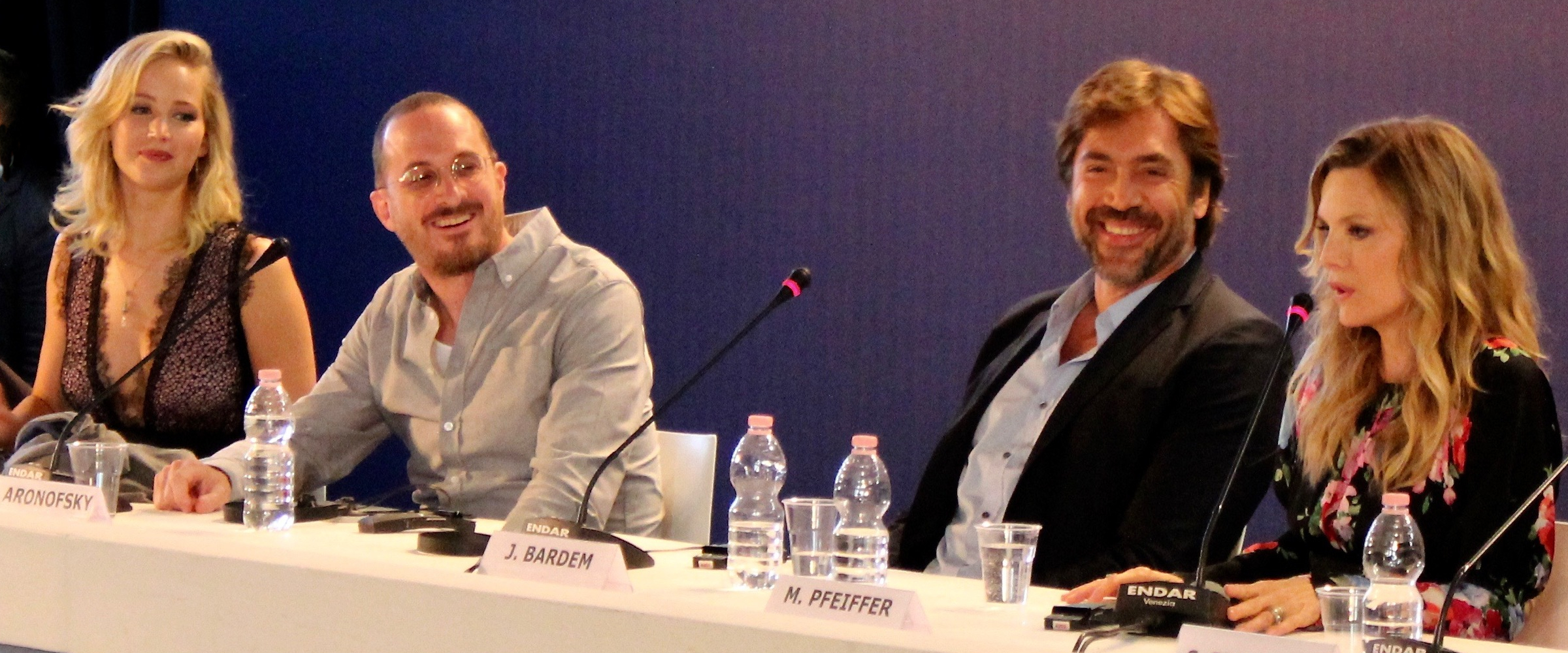 Wir lasen einen irritierenden Bericht des Salonbolschewisten der Frankfurter Allgemeinen Zeitung, Dietmar Dath, aus Venedig, in der er eine Reihe übler Beschimpfungen des Regisseurs vom Stapel läßt: "Was war das denn für ein Dreck", "Aronofskys aktuelle Schande", "einer der lästigsten Filmemacher unserer Zeit". Es heißt dort abschließend: "Aronofsky wird nie begreifen, wie man die Leute im Saal mit Kinomitteln in eine Geschichte zieht, aus der sie auch nach dem Ende des Films nicht herausfinden werden, weil die Räume dieser Geschichte sich an ihre eigene Seelenarchitektur anschließen." Nun, zumindest letzteres ist gut gesagt, und wir bekennen, daß es uns nach diesem Film gerade so ergeht. Dath, einer der lästigsten Feuilletonschreiber Deutschlands, gibt vor, Aronofskys Kinomittel nicht anerkennen zu können, weil Hitchcock, Polanski und andere es schon so ähnlich gemacht hätten. Cineastisch gebildet, der Mann, aber Quark. Wir möchten unterstellen, daß das Publikum in Venedig mehrheitlich linksliberal gesinnt ist, und wir unterstellen weiter, daß dieses Publikum die Aktualität der Geschichte durchaus erkannt hat, auch und gerade der Teil, der "Buh" gerufen hat. Jeder könnte sich selbst in einer der Figuren verorten, wenn er in den vorgehaltenen Spiegel sehen wollte.