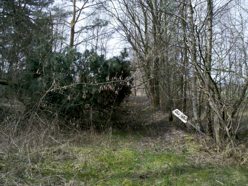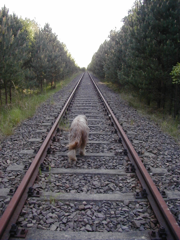Fünfzehn Jahre ist es her, Mai 2000, daß wir das Schienenbild mit Cassola aufgenommen haben. Das World Trade Center in New York stand noch und vor allem war die kleine Industriebahnlinie zwischen Rüdnitz und dem Gewerbegebiet bei Bernau noch nicht abgebaut. In mehrerlei Hinsicht war die Welt also eine andere. Heute zieht sich an dieser Stelle ein verwahrloster breiter Wanderweg durch den Wald, stellenweise durch den alten Bahndamm erhöht.