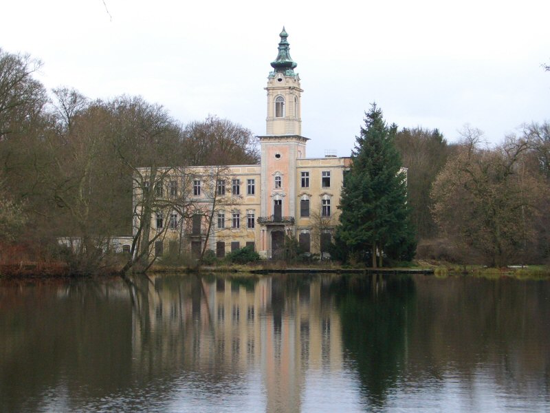 Das Schloß <http://de.wikipedia.org/wiki/Schloss_Dammsm%C3%BChle>, eine der Perlen des Barnim, genau genommen eher das Machwerk eines Berliner Fabrikanten, spiegelt sich in seinem See und harrt eines Investors. Manches hier harrt eines Investors. Das Schloß harrte schon, als wir das letzte Mal vor Jahren dort waren. Es scheint, daß es noch eine Weile harren muß.