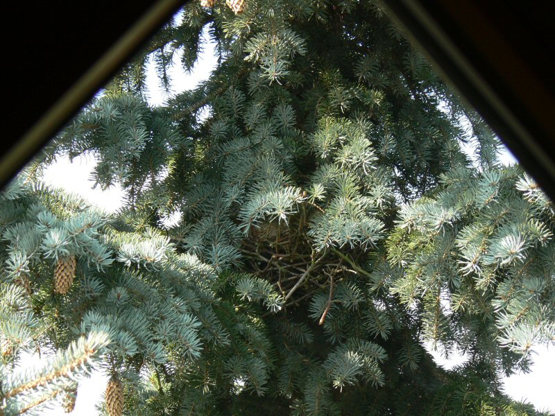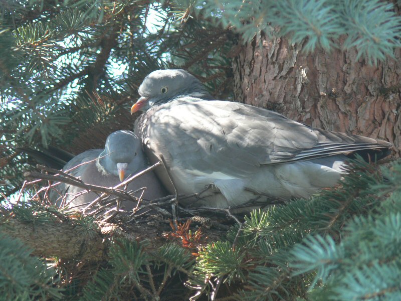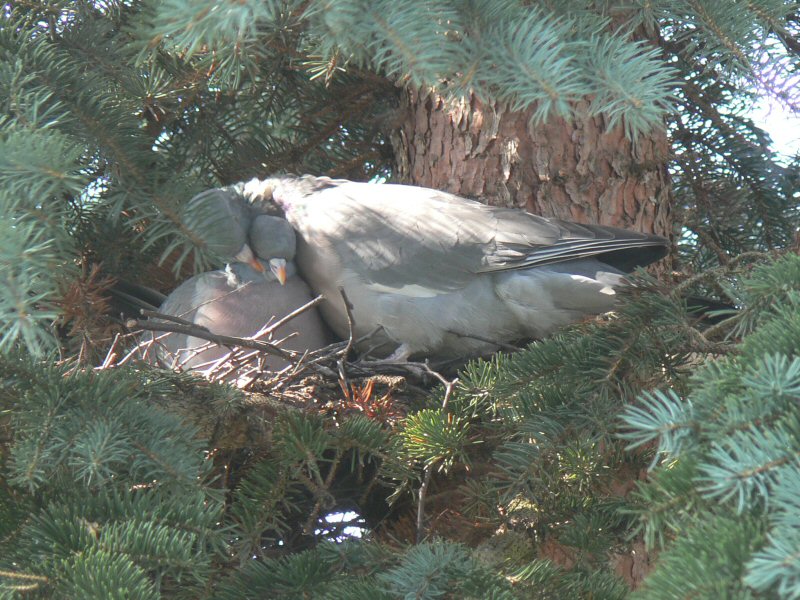 Zwei Tauben haben auch begonnen, sich in der Fichte häuslich einzurichten.