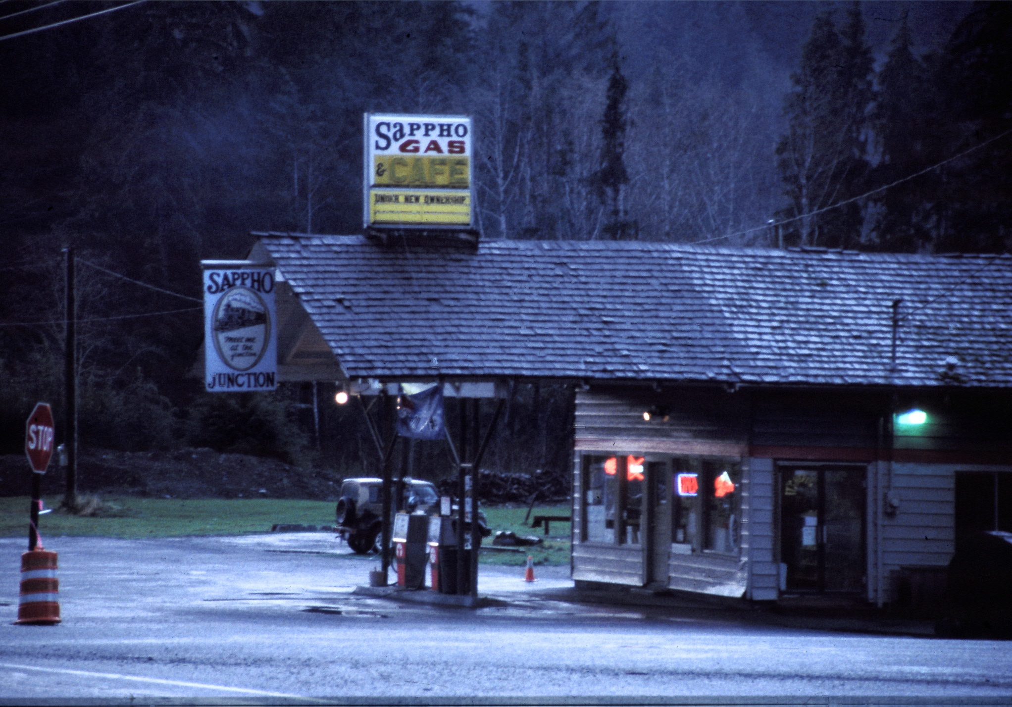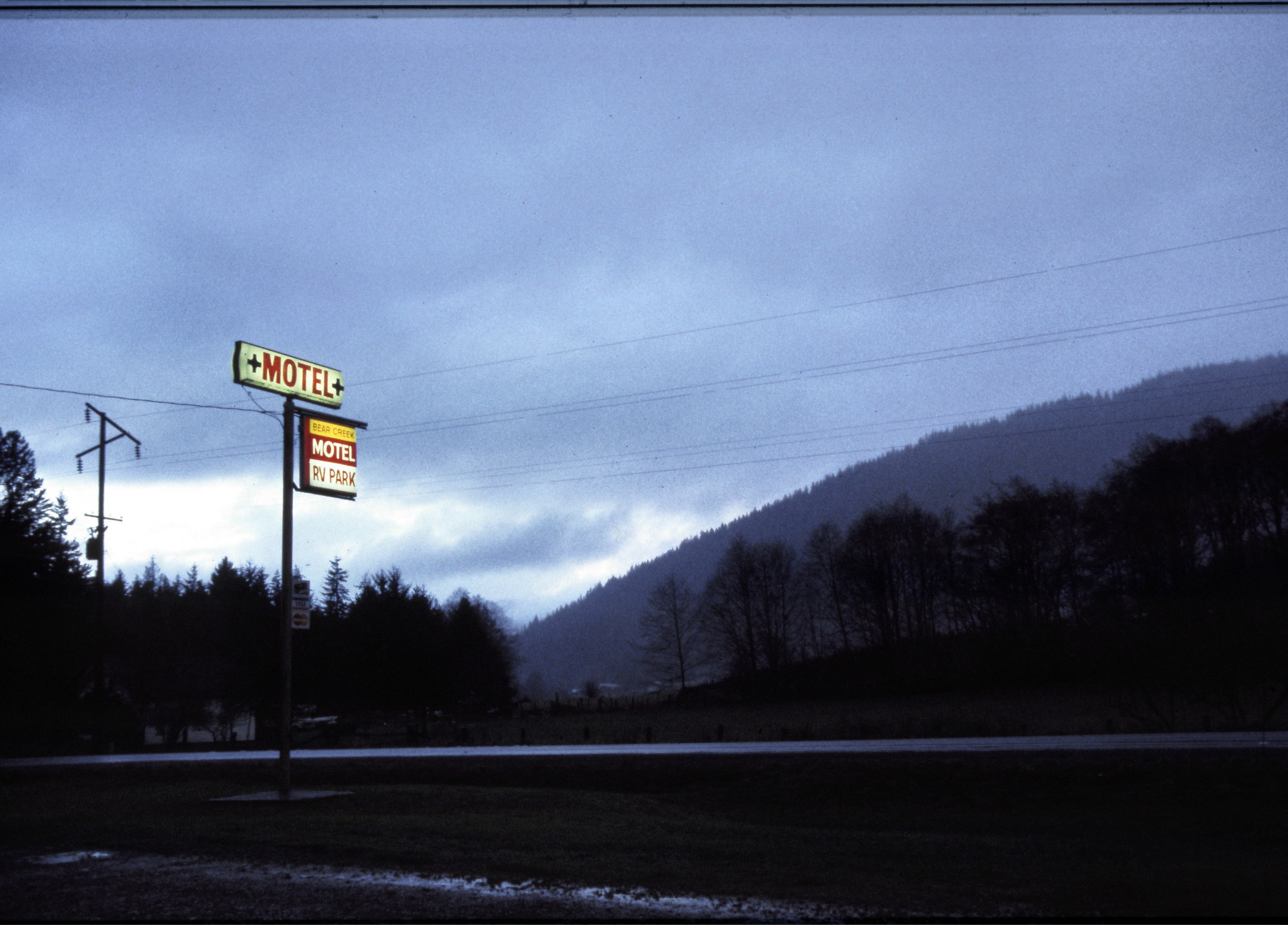 Bei einbrechender Nacht entlang am Lake Crescent durch den Wald, wo es ständig zu regnen scheint. Übernachtung im Bear Creek Motel, vorher ein Abendessen im Hungry Bear Cafe. Holzdielen, Music Box mit damals noch echten Schallplatten, ein bärtiger Naturbursche tanzt mit einem Mädchen, zurechtgemacht wie Laura Dern in Wild at Heart. Alles viel zu sehr Klischee um wahr zu sein.
