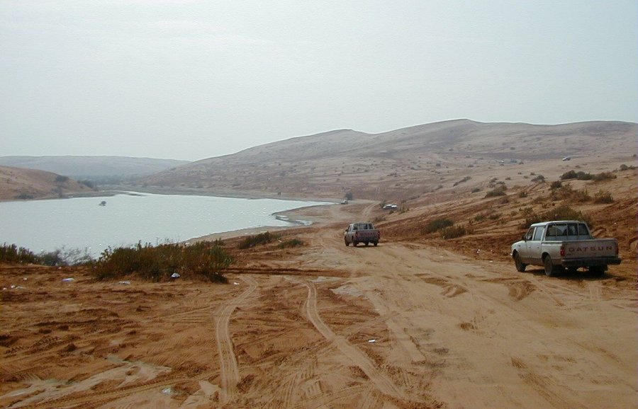 Lake Karrarah ist ein... man könnte sagen: Erholungsgebiet in der Nähe von Riad. Das Wasser ist gelblich-trübe, wie sollte es anders sein. Aber man badet ja schließlich nicht in dem See. Man fährt hin und ist dann da und campiert zwei, drei Stunden, läßt seinen Müll da und fährt wieder heim. Größte kommunizierende Einheit ist die Familie. Schilderungen besagen, daß es im Frühjahr am Lake Karrarah wundervoll sein soll: es soll grün sein, und Vögel singen. Das mag schwer vorstellbar sein, das ist aber vielleicht eine Frage der gewohnten Relationen: Was stellen wir uns in Europa unter frühlingshaftem Vogelgesang vor, und was kann die Wüste bieten?
