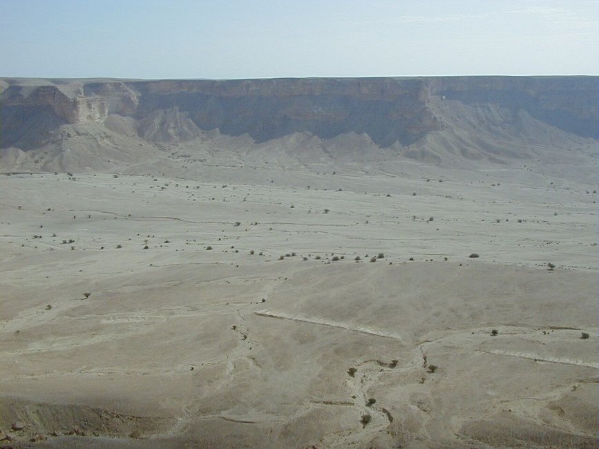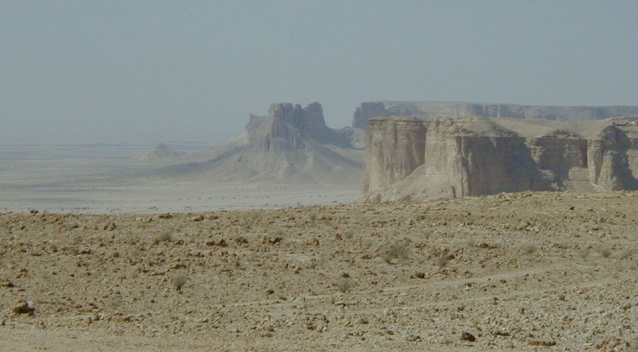 Man kann die Idee, die hinter der Bauweise steckt, selbstverständlich an den Ruinen studieren. Oder man kann in Riad auf einen der innerstädtischen Hügel aus Limestone klettern und hoffen, daß man nicht eine mangelhaft verhüllte Frau auf einem nachbarschaftlichen Dach überrascht, was sicher höllischen Ärger zur Folge hätte.