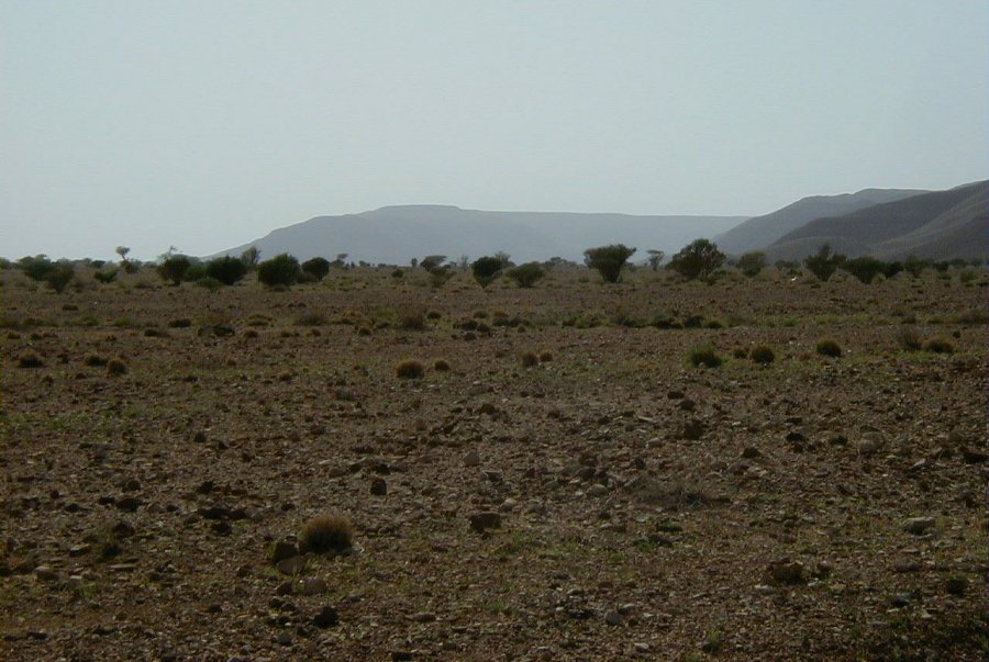 Die Farmen sind üppige, wahrscheinlich auch mit Wasser von den Küsten versorgte Einsprengsel in der Wüste. Das Wort "Erde" ist unangebracht, wie man leicht an Feldern sehen kann, die man der Wüste zur Wiedervereinnahmung anheimstellte. Hier ist alles Sand und kalkig-steiniger Boden, und wo am Straßenrand in wohlhabenden Farmgegenden Schläuche gut dosiert Wasser freisetzen, wachsen prächtige Palmen, solange Anlaß zur Bewässerung gegeben ist.